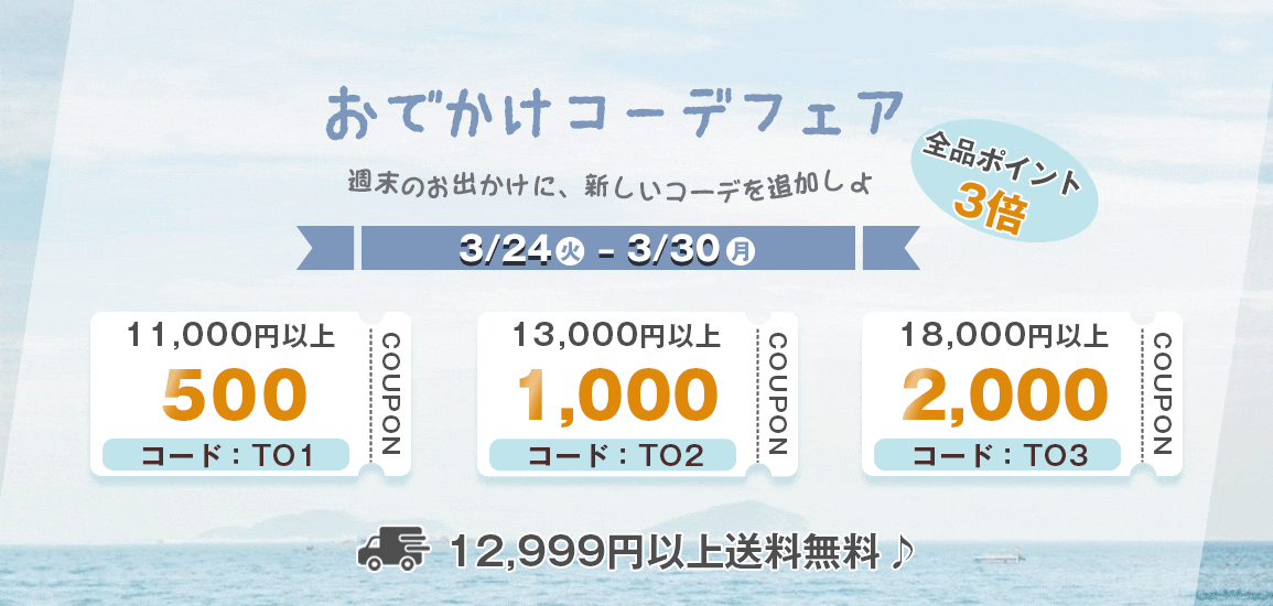12,999円以上のご購入で全国一律送料0円♪