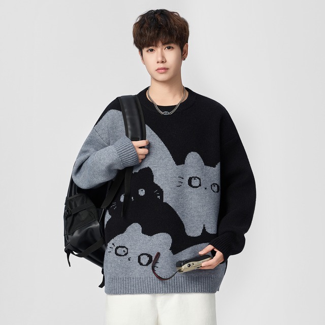 おすすめ!✿大人気商品!【Mmoptopシリーズ】★セーター★ 2color ニットトップス カートゥーン 男女兼用 メンズ 猫 ネコ ねこ