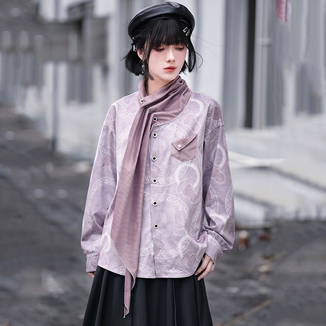 大人気シリーズ!【古怪舍---雲螭シリーズ】★チャイナ風シャツ★ トップス 刺繍 長袖シャツ オリジナル フェイクレイヤード 可愛い