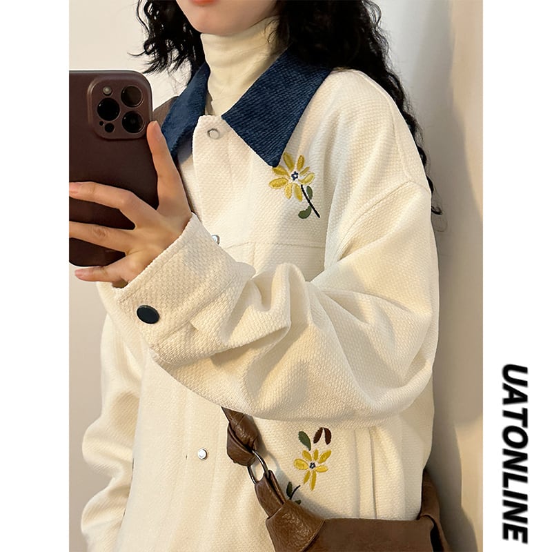 ✿花刺繍配色ジャケット!【UATONLINEシリーズ】★アウター★ ユニセックス 2color ジャケット 男女兼用 メンズ 刺繍 花柄 配色 カジュアル