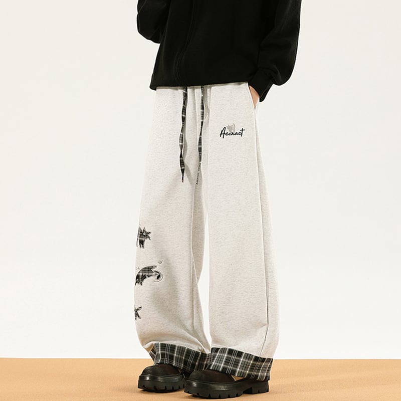 ♥チェック柄と猫柄ズボン!【逃離地球シリーズ】★ズボン★ ユニセックス 2color カジュアルパンツ ボトムス 猫 猫柄 ネコ ねこ チェック柄