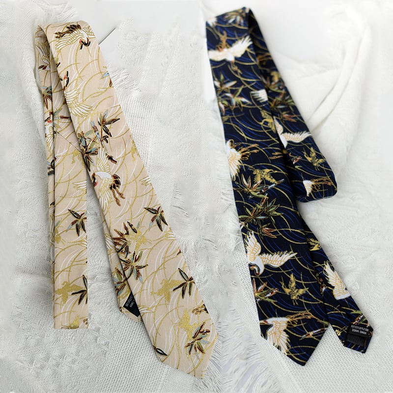 【霖悅君シリーズ】★ネクタイ★ 5color 鶴 つる ツル 小物 飾り物 メンズ 男女兼用 レトロ 個性的