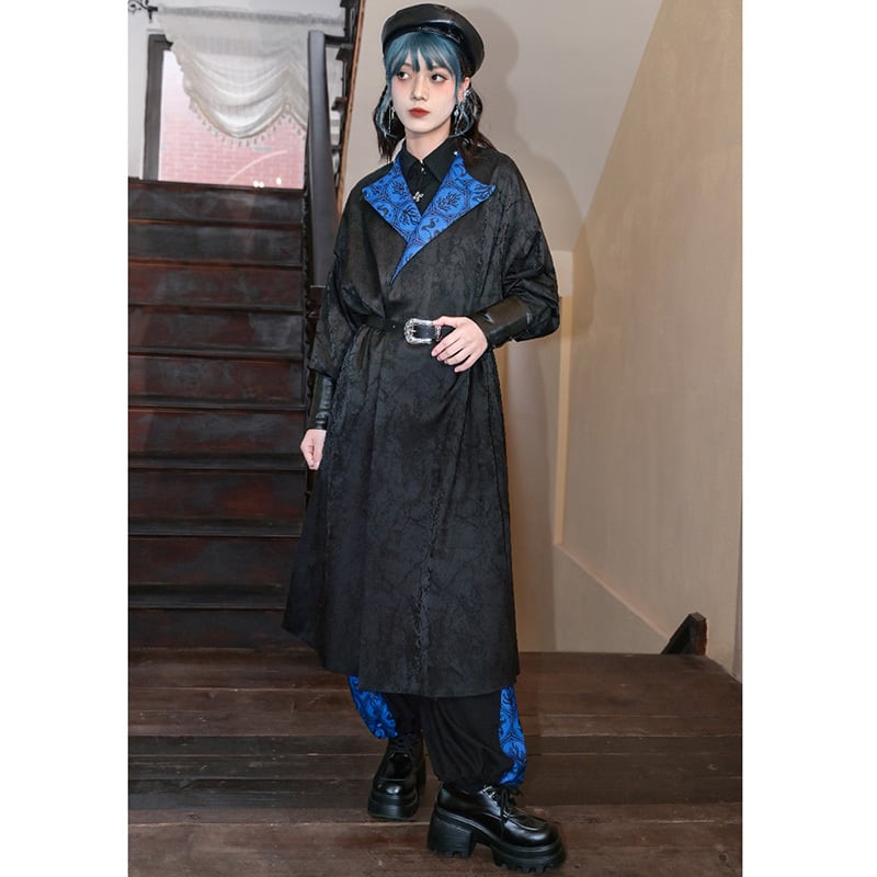 【古怪舍---海墟引シリーズ】★チャイナ風コート★ ロングコート オリジナル 両面着れる服 ブラック ブルー 黒 青