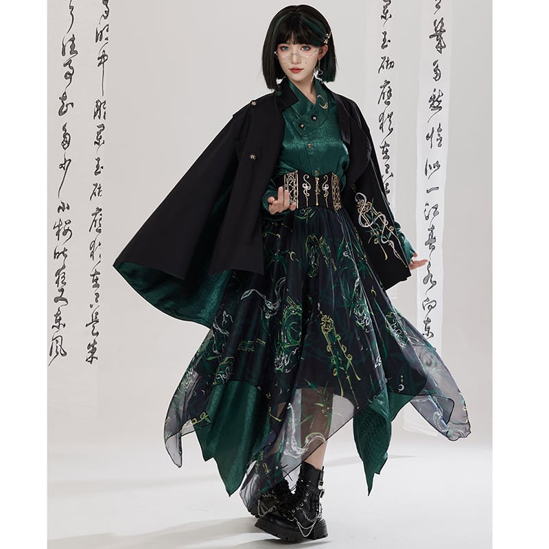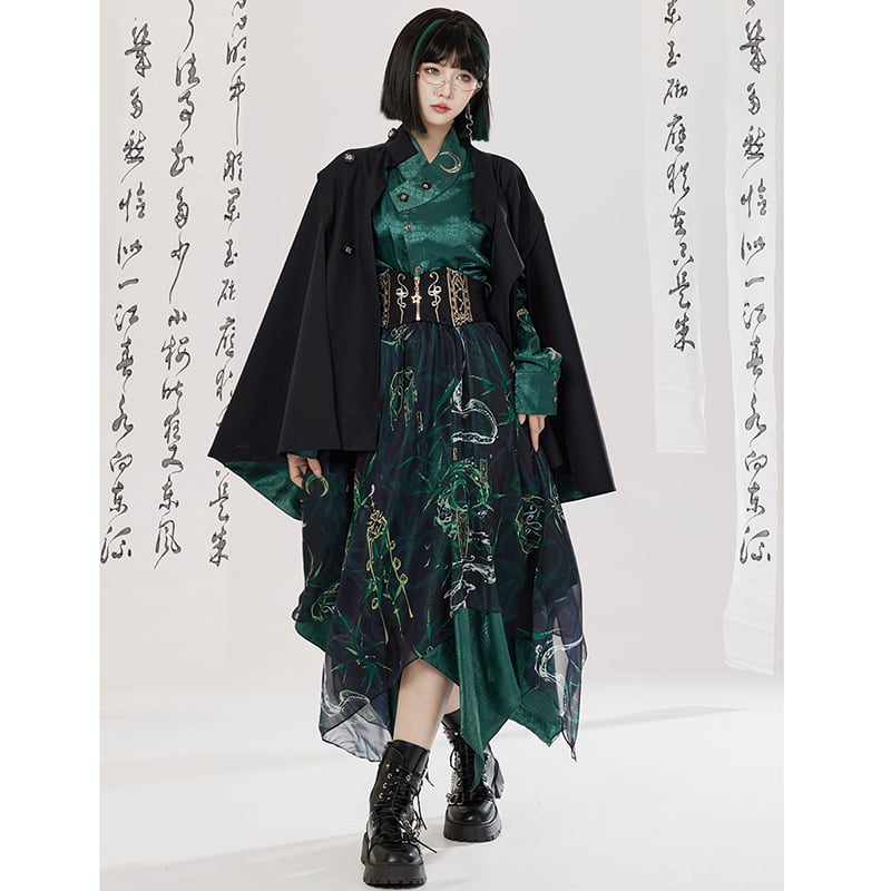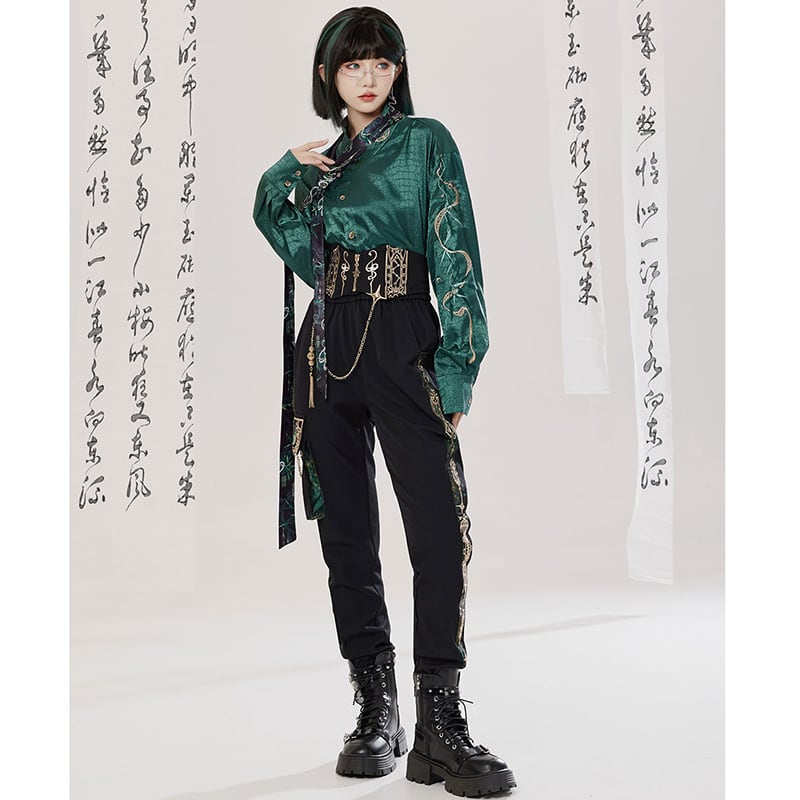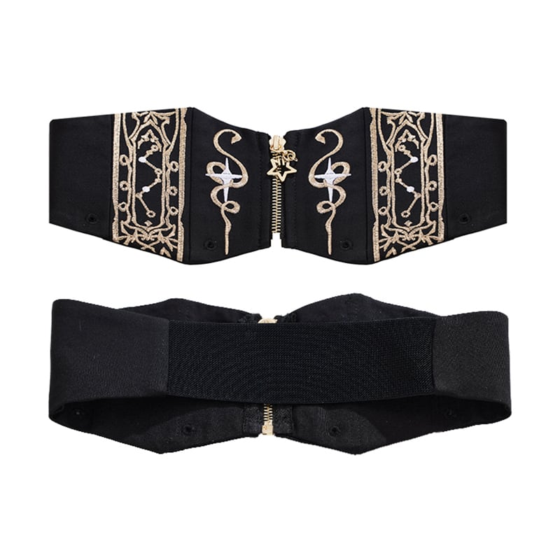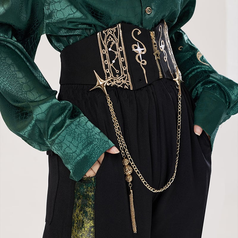 【卿棠---幽篁玉京シリーズ】★チャイナ風ベルト★ ボトムス 刺繍 帯 個性的 合わせやすい ブラック 黒い