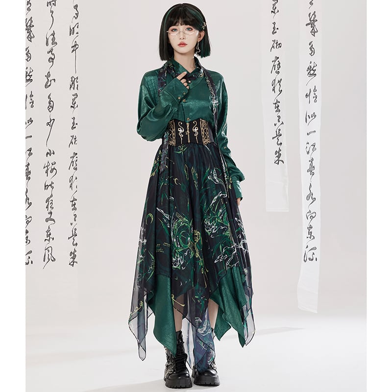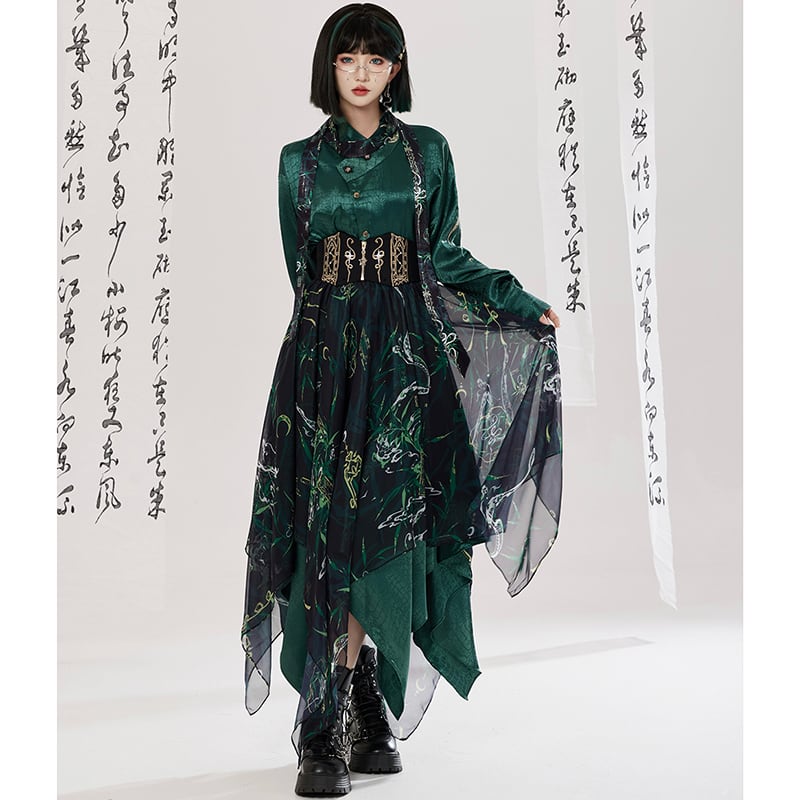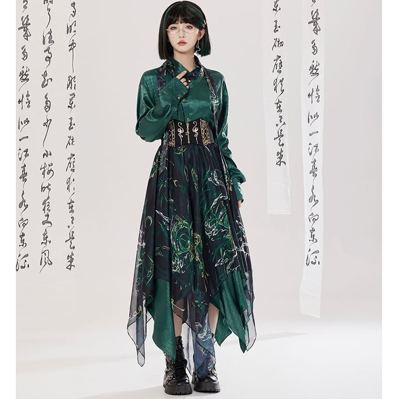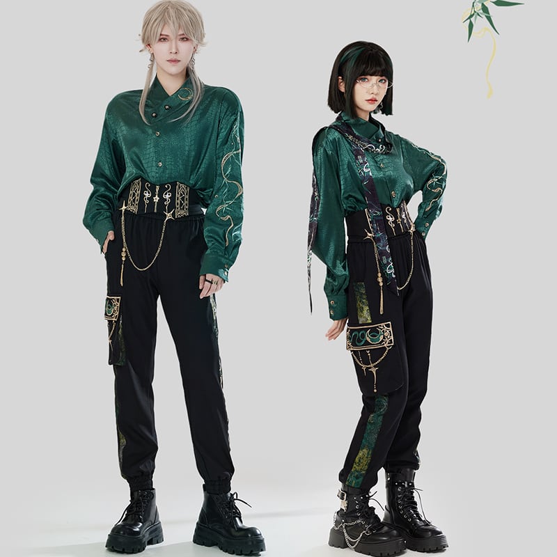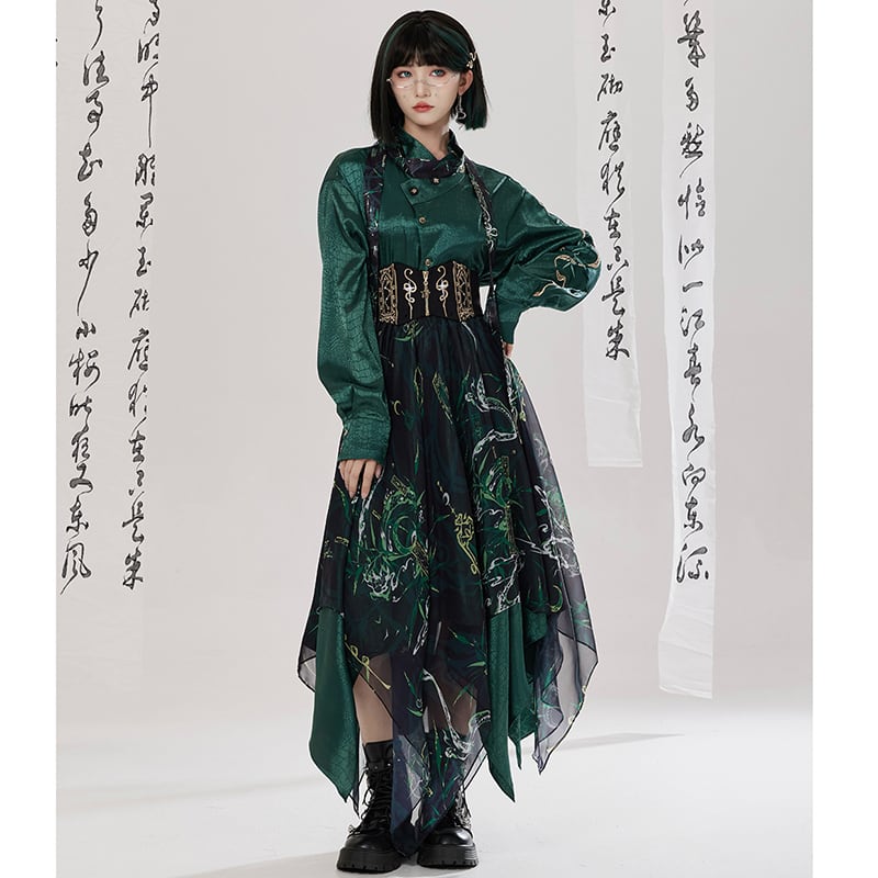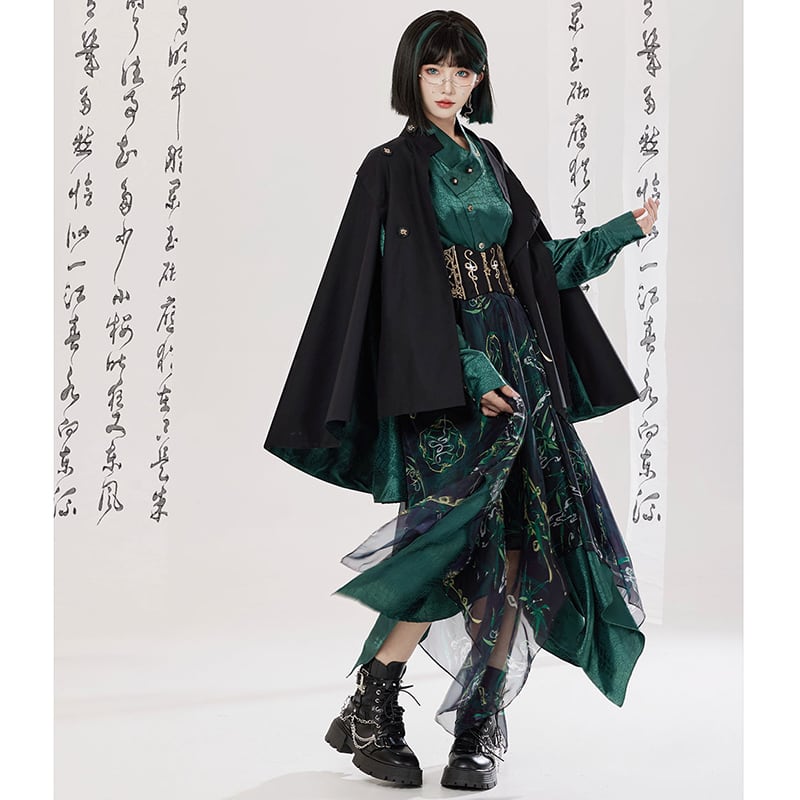 【卿棠---幽篁玉京シリーズ】★チャイナ風ベルト★ ボトムス 刺繍 帯 個性的 合わせやすい ブラック 黒い