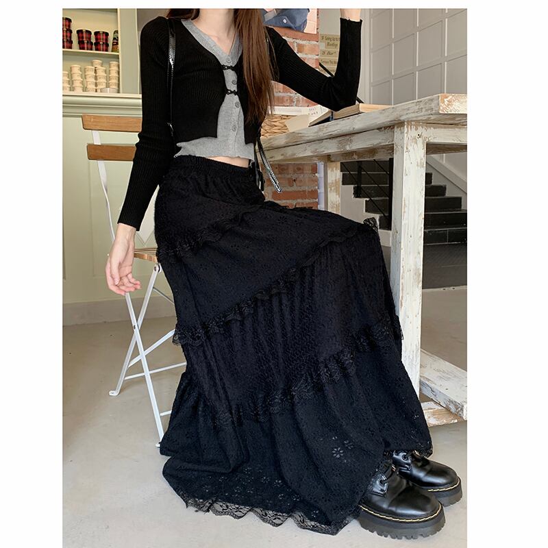 【MMYDLシリーズ】★スカート★ 2color レーススカート ボトムス 切り替え ホワイト ブラック