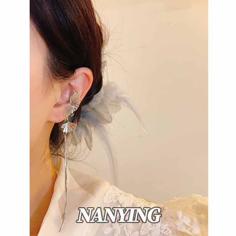 【NANYINGシリーズ】★チャイナ風耳飾り★ イヤーカフ ペア アクセサリー レディース 扇子 ロング丈