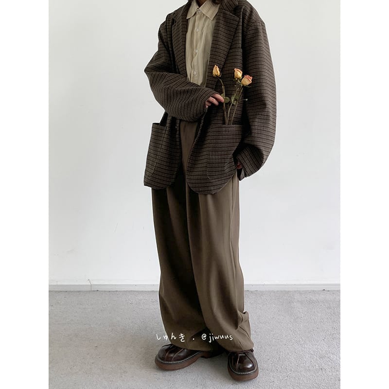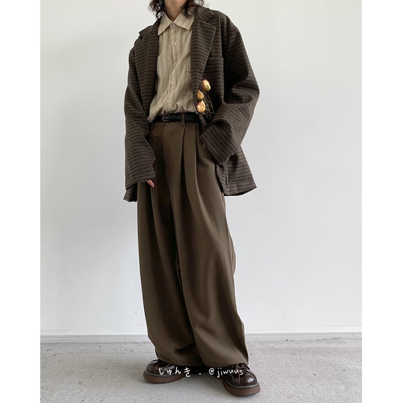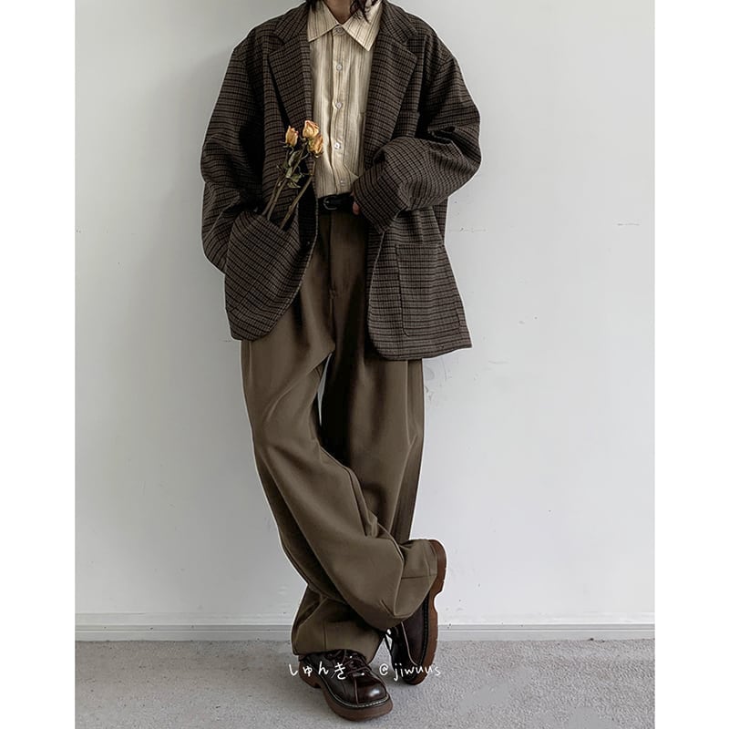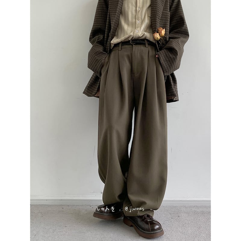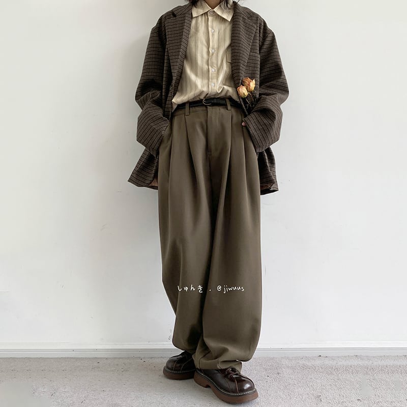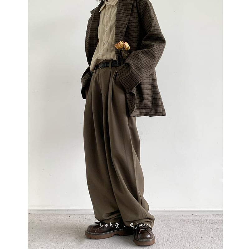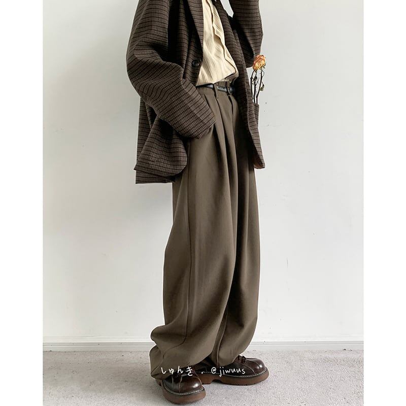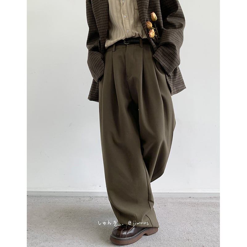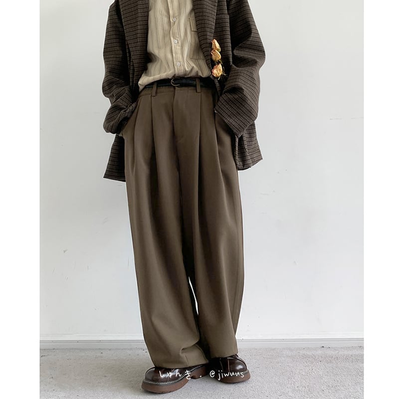 【JIWUシリーズ】★ズボン★ カジュアルパンツ 2color ボトムス 男女兼用 メンズ レトロ 合わせやすい 無地 ブラック コーヒー色