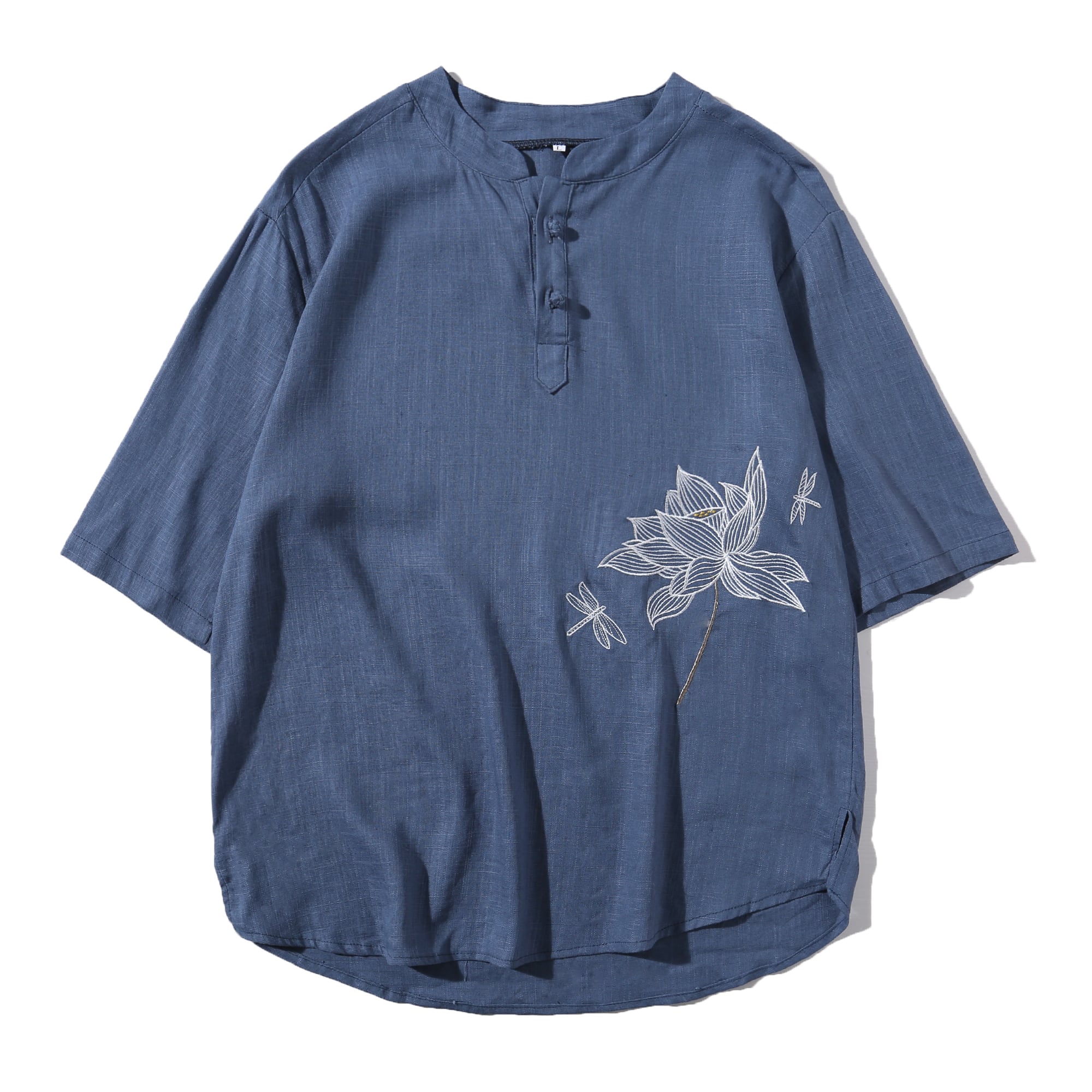 【MIANMAシリーズ】★チャイナ風トップス★ 3color Tシャツ 半袖 男女兼用 メンズ 大きいサイズ 蓮の花 唐装