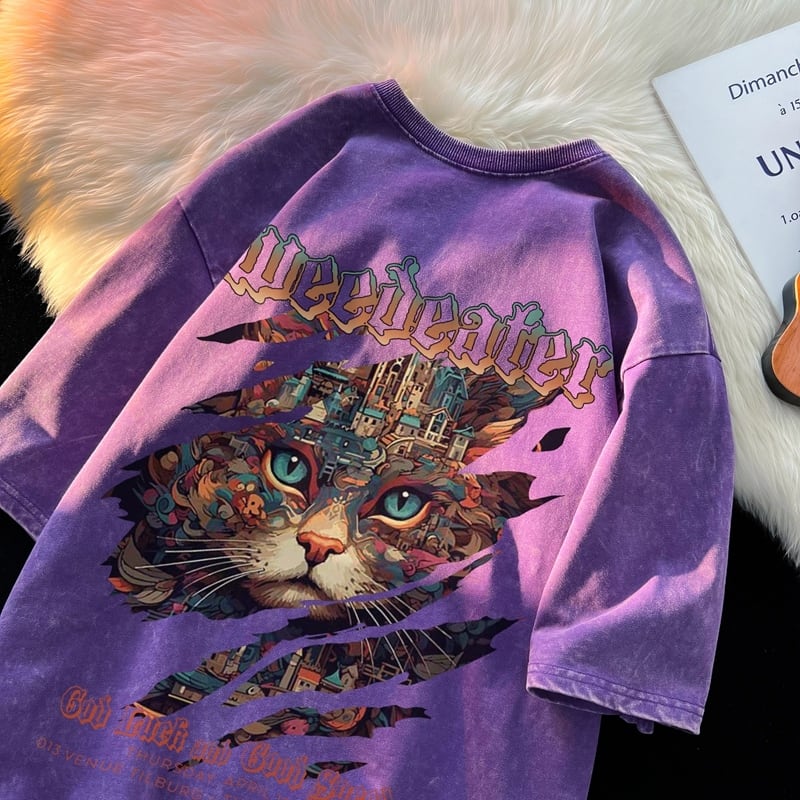 【Leonbinnoリーズ】★Tシャツ★ 8color トップス 半袖 猫 ねこ ネコ 男女兼用 メンズ 大きいサイズ レトロ