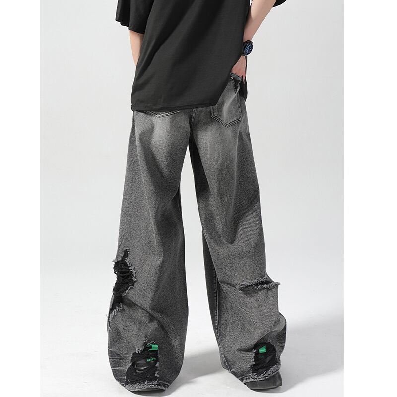 【GZXXシリーズ】★デニムパンツ★ ボトムス レディース 男女兼用 メンズ ダメージ加工 黒灰色 おしゃれ