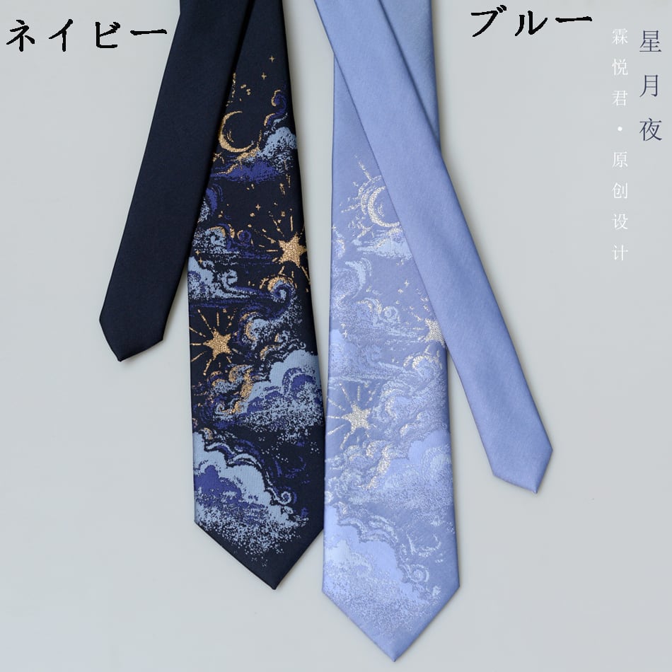 【霖悅君シリーズ】★ネクタイ★ 2タイプ選択可能 飾り物 メンズ レディース 男女兼用 ブルー 青い 星月