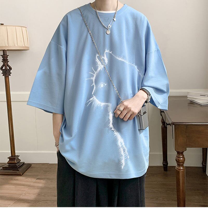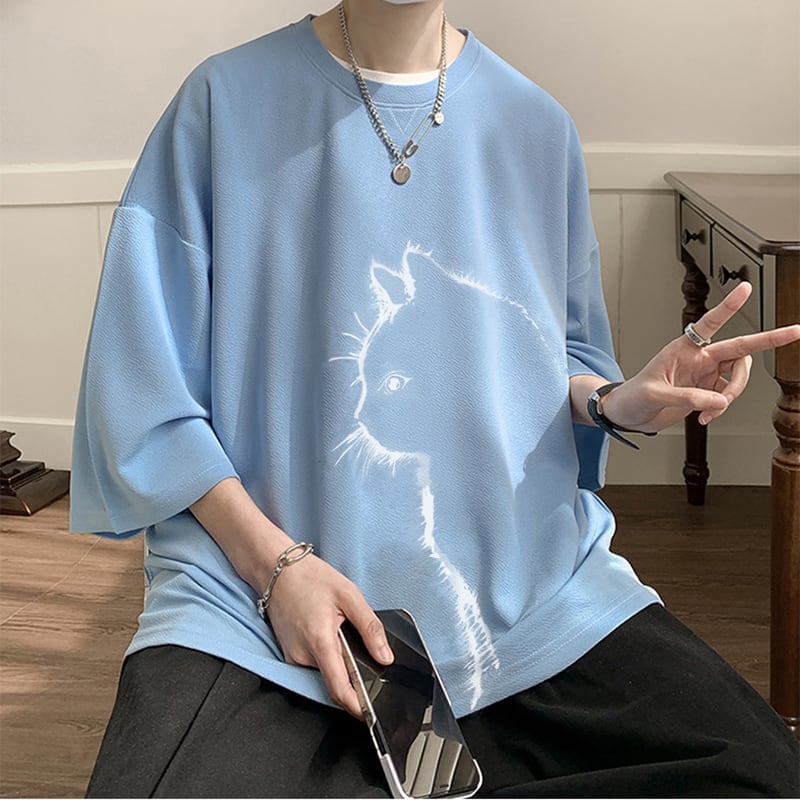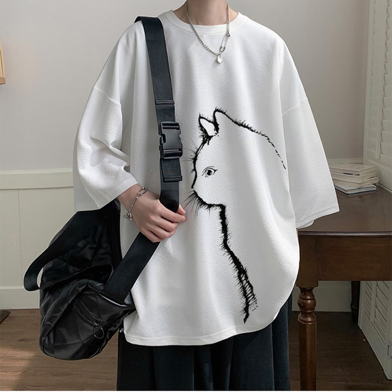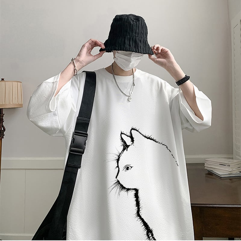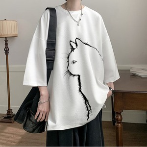 【CEXUシリーズ】★Tシャツ★ 3color トップス 男女兼用 メンズ 大きいサイズ 猫 猫柄 ねこ ネコ 黒 白 青