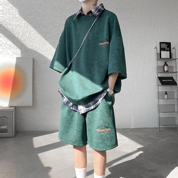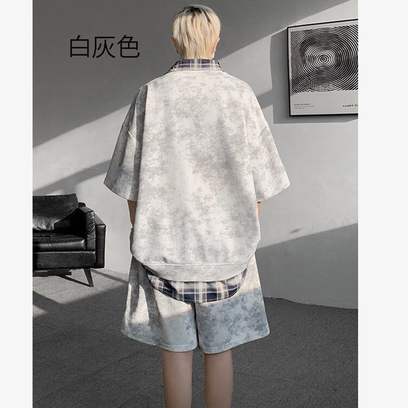 【CEXUシリーズ】★チャイナ風セットアップ★ 4color POLOシャツ+短パン 男女兼用 メンズ 大きいサイズ 絞り染め