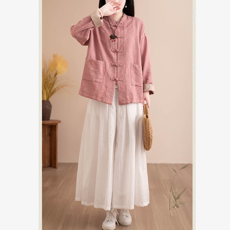 【清裊シリーズ】★チャイナ風トップス★ シャツ 3color 長袖 シャツアウター チャイナボタン レディース シンプル 配色