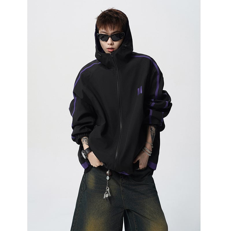 【Vesiboシリーズ】★ジャケット★ 2color アウター フード付き 男女兼用 メンズ 配色 縦縞 縞模様 カジュアル