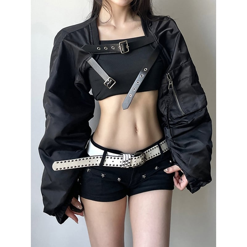 【Gagaoptシリーズ】★アウター★ トップス 着痩せ レディース セクシー かっこいい ブラック 黒い