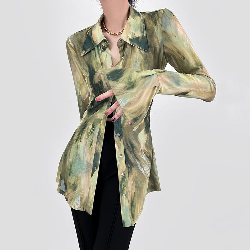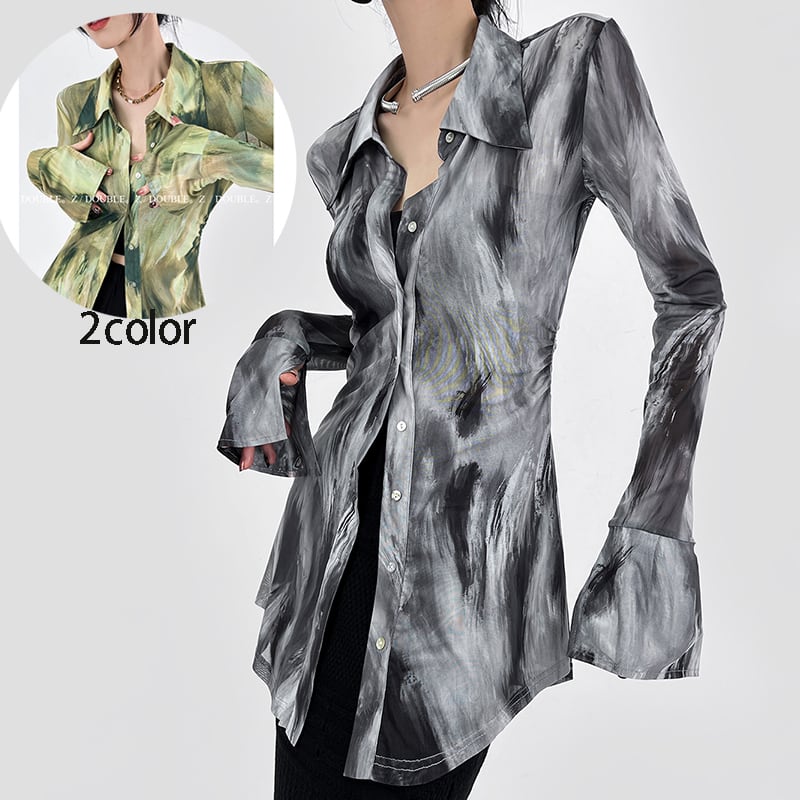 【DOUBLE Z SHOPシリーズ】★シャツ★ 2color トップス レディース 夏服 長袖シャツ 弾力チュール 日差し防止