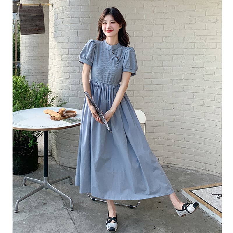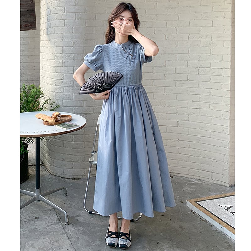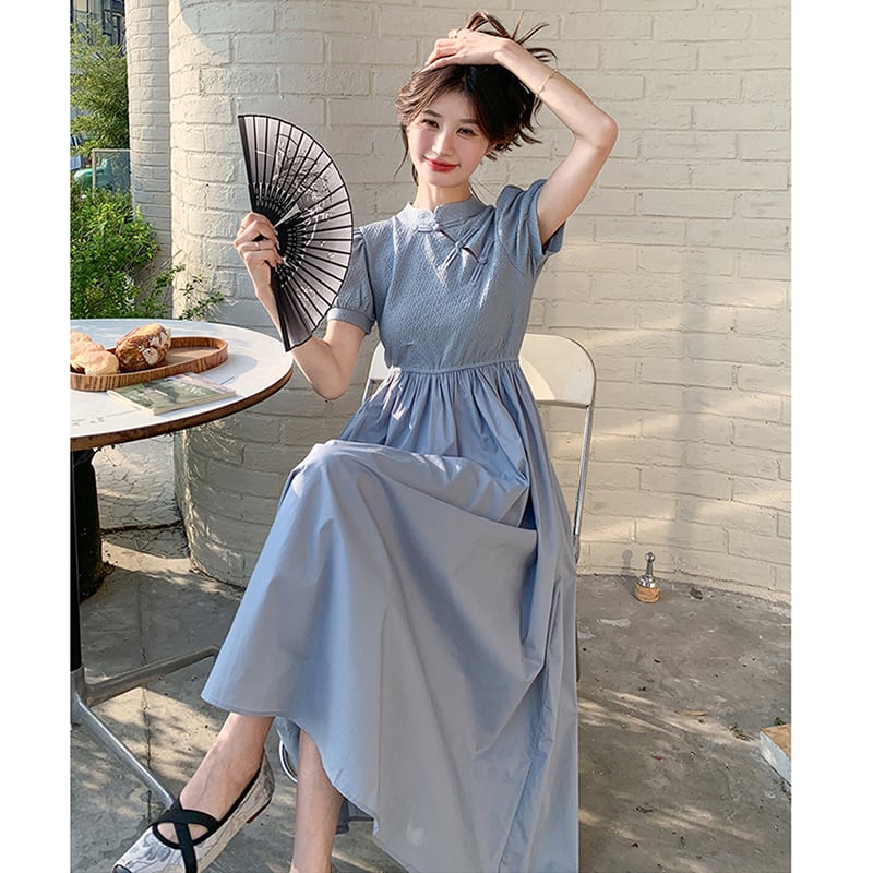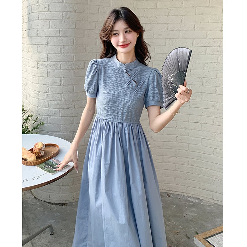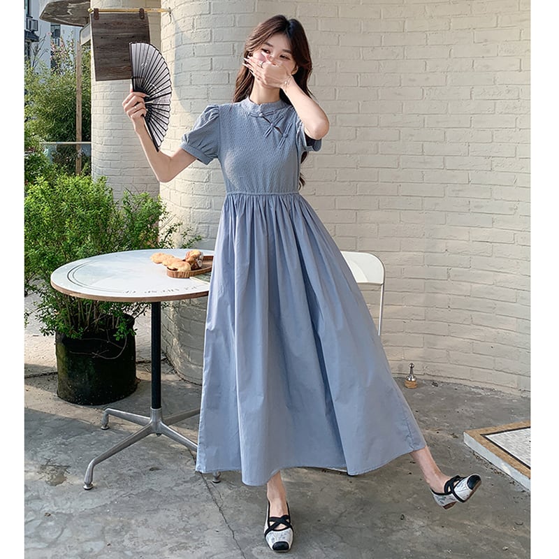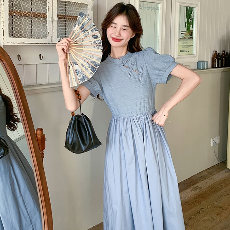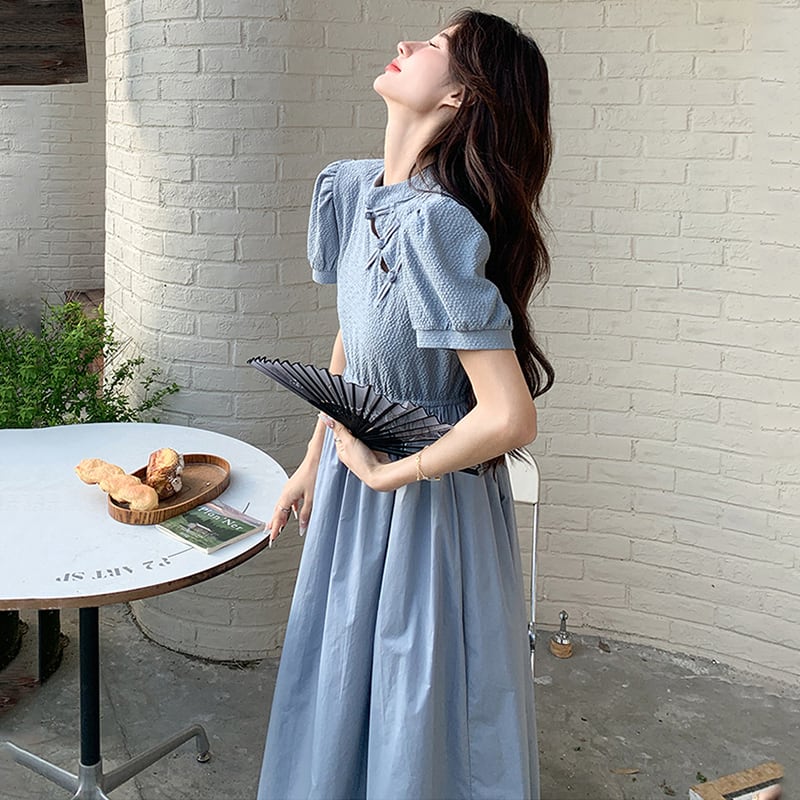 【CC STUDIOシリーズ】★チャイナ風ワンピース★ 2color チャイナボタン レディース 夏服 デート Aライン 青 黒