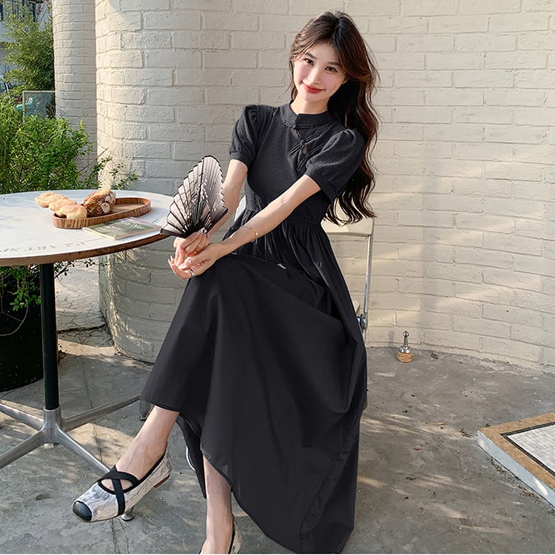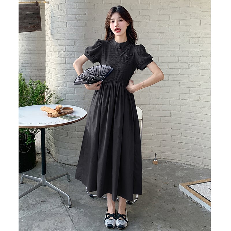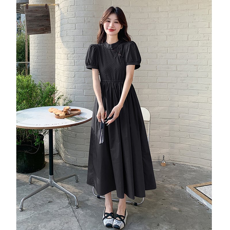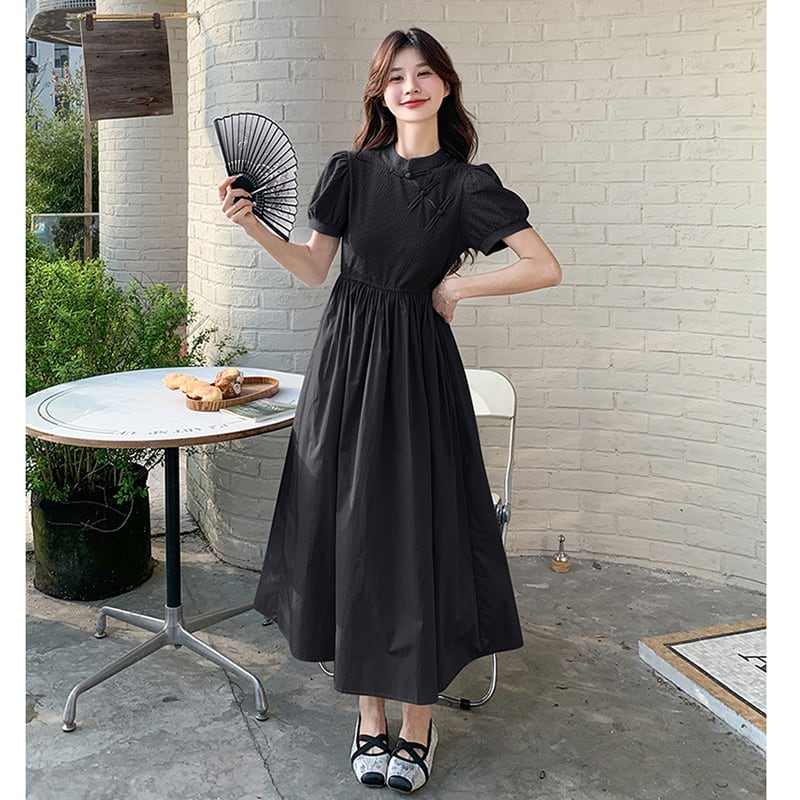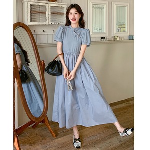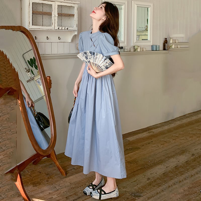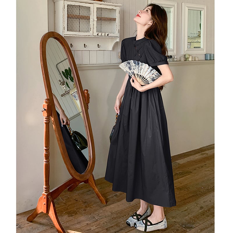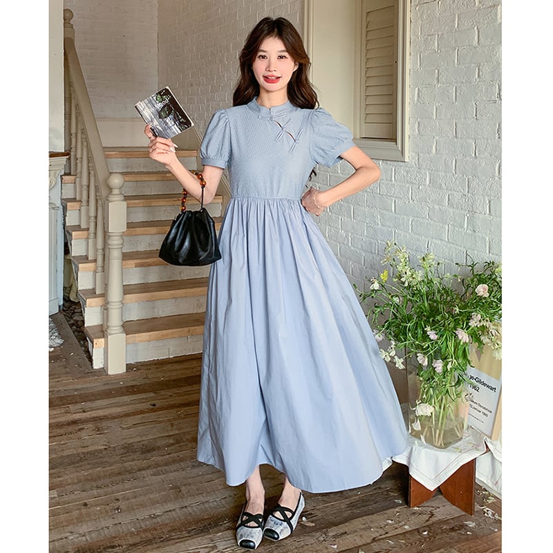 【CC STUDIOシリーズ】★チャイナ風ワンピース★ 2color チャイナボタン レディース 夏服 デート Aライン 青 黒