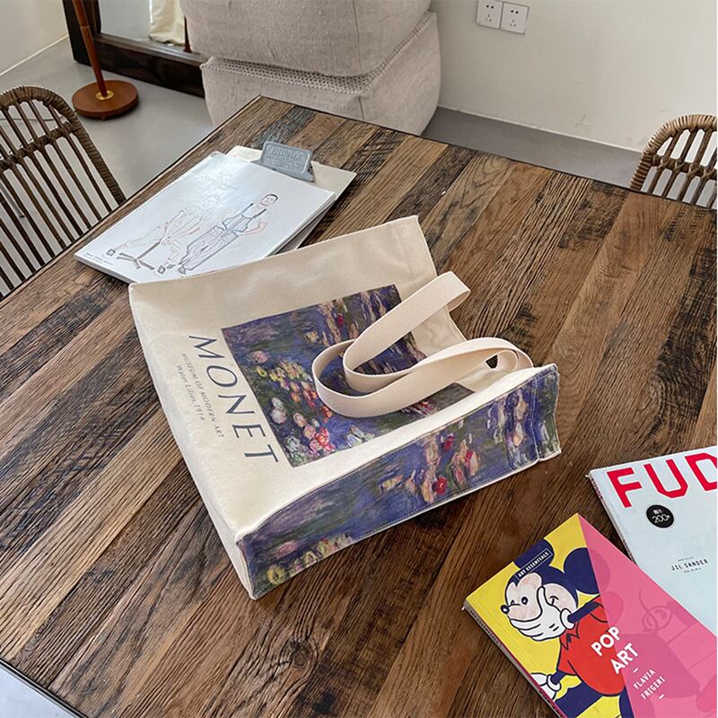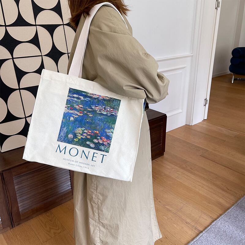 【FAT&SLMシリーズ】★バッグ★ 2color トートバッグ ズック 大容量 デート 花柄 油絵風 空 青 ブルー 紫 パープル
