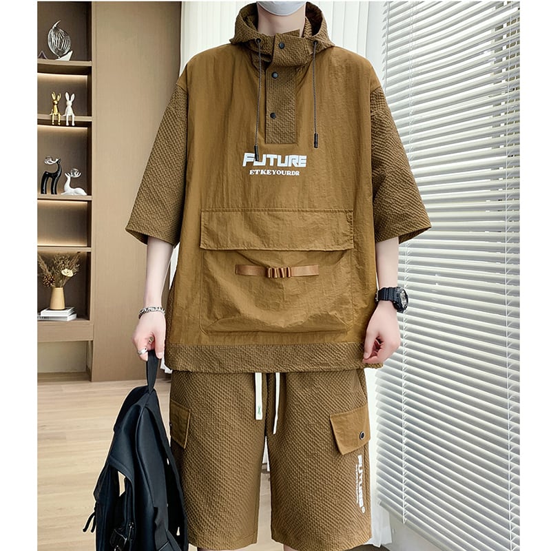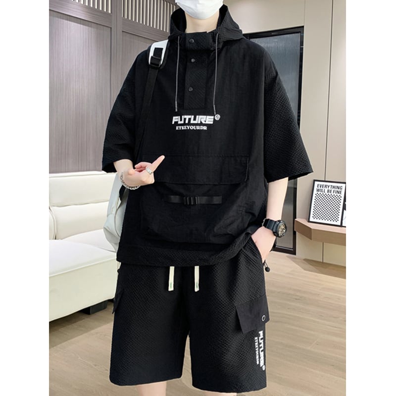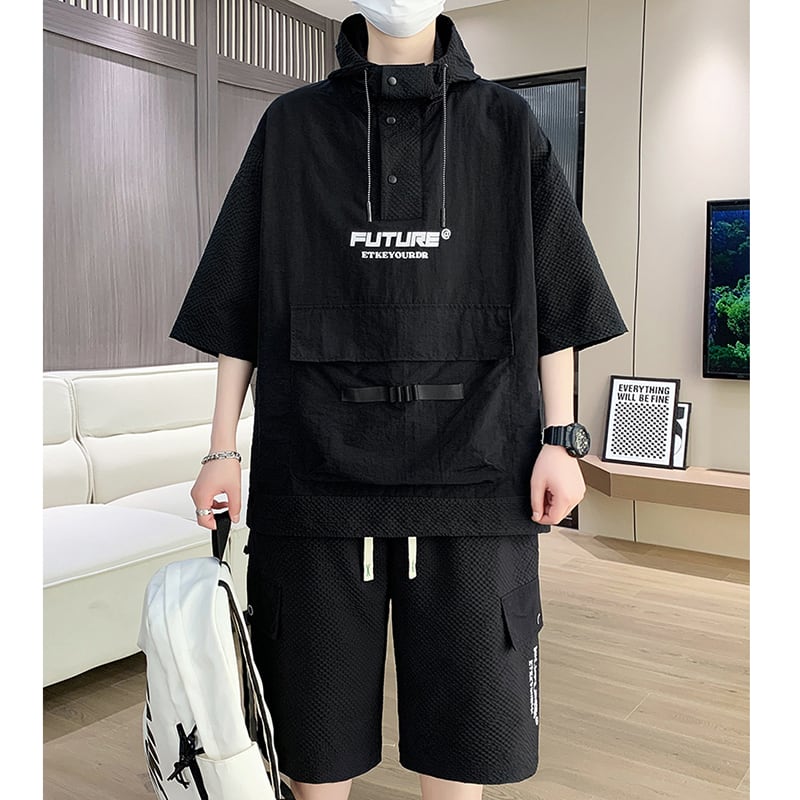 【ZUOFEILIシリーズ】★セットアップ★ 3color パーカー+短パン 男女兼用 メンズ 大きいサイズ 黒 白 カジュアル
