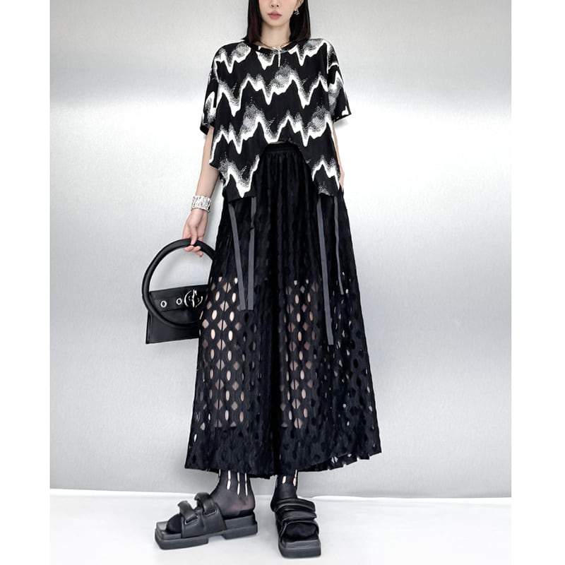 【YIDAOシリーズ】★チャイナ風トップス★ Tシャツ 着痩せ 水墨柄 ファッション 合わせやすい ブラック 黒い 不規則