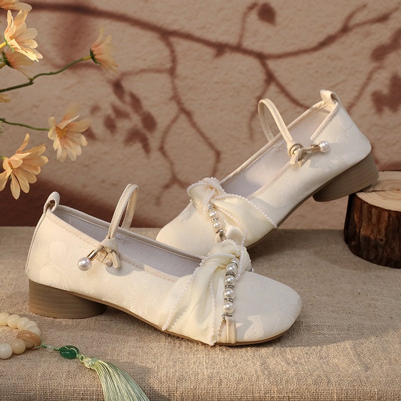 【HHシリーズ】★チャイナ風靴★ 2color サイズ35-40 お靴 グリーン ベージュ 気質アップ 合わせやすい