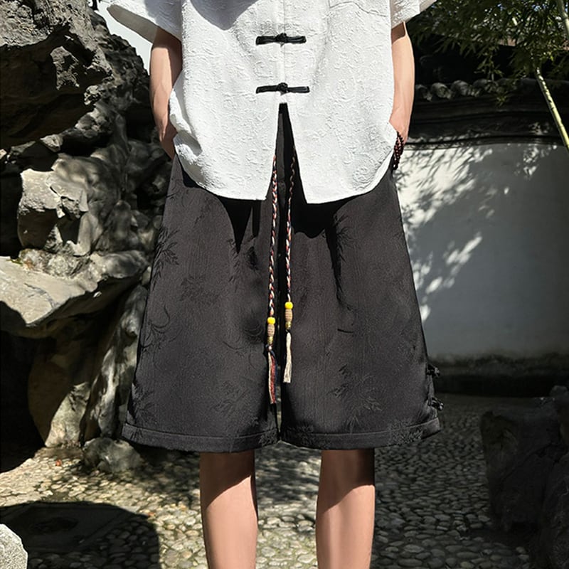 【KADISHOUシリーズ】★チャイナ風ズボン★ 2color 短パン ショートパンツ チャイナボタン ボトムス 男女兼用 メンズ 大きいサイズ