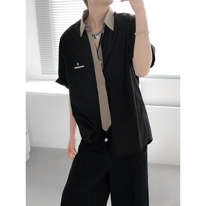 【FUDEリーズ】★POLOシャツ★ 2color トップス 半袖 男女兼用 メンズ 配色 カジュアル フェイクレイヤード