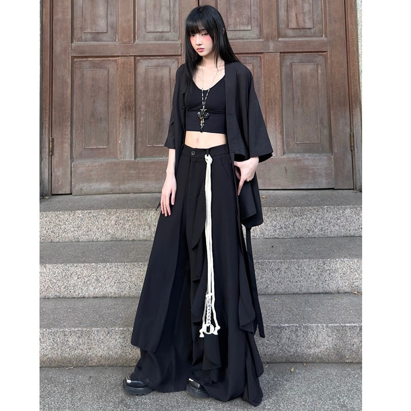 【FG721シリーズ】★チャイナ風ズボン★ ボトムス カジュアルパンツ 男女兼用 メンズ 切り替え ガウチョパンツ 不規則 黒 合わせやすい