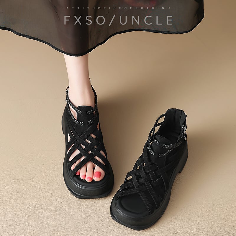 【FXSOシリーズ】★お靴★ 2color ヒール5cm サイズ35-39 サンダル ブラック ベージュ 編み込み