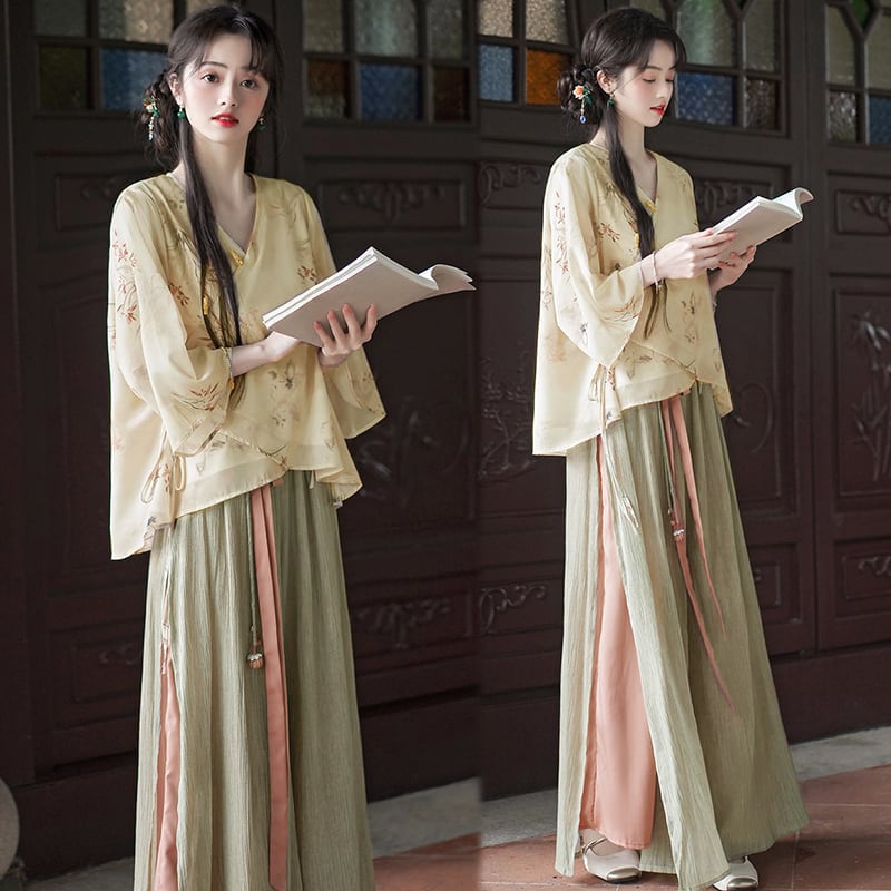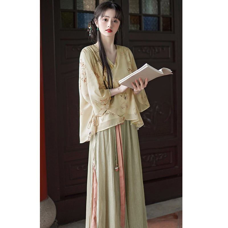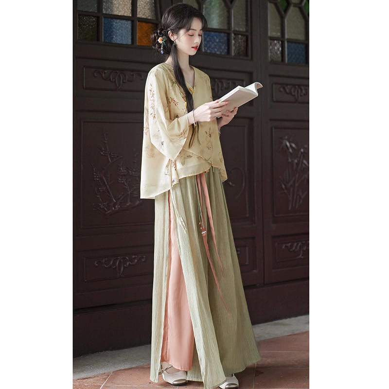 【書槿笙シリーズ】★チャイナ風セットアップ ★ トップス+ズボン 2点セット Vネック 可愛い 中華服