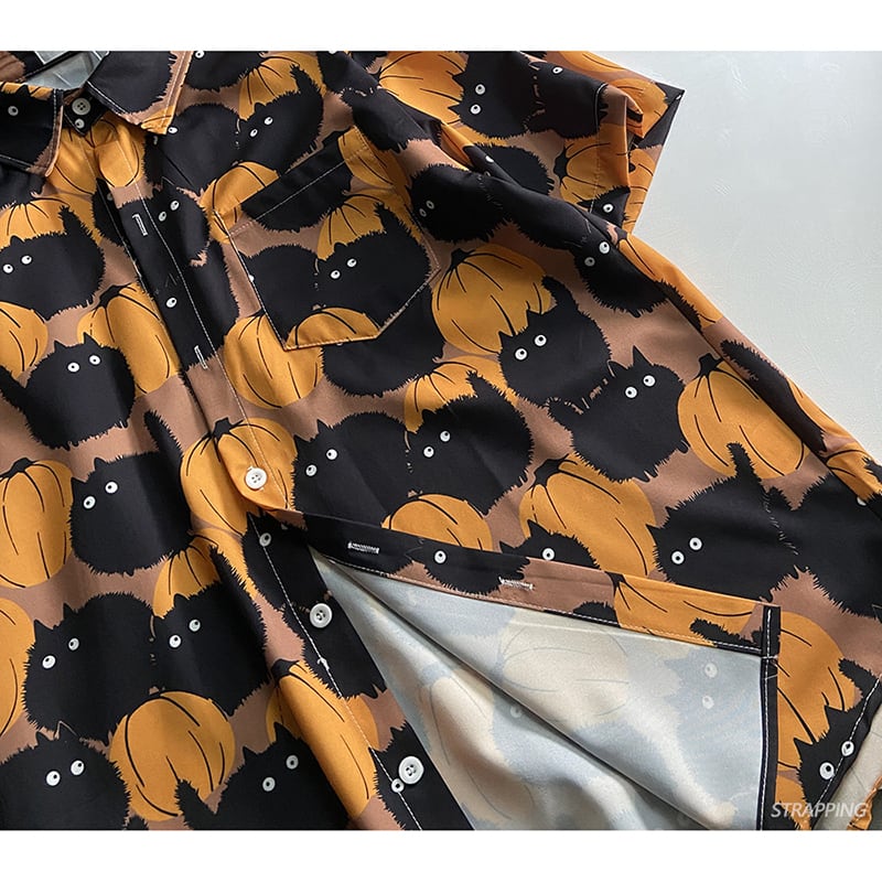 【STRAPPINGシリーズ】★シャツ★ 猫 ねこ ネコ トップス 半袖シャツ 男女兼用 メンズ レトロ アロハシャツ プリント