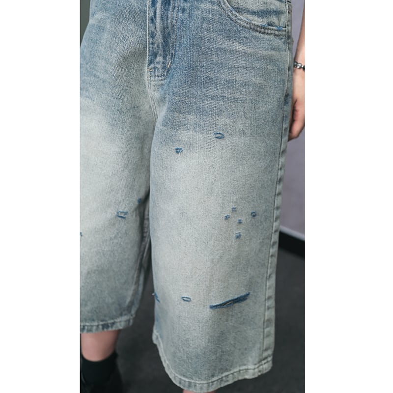 【古怪舍---淺海間奏シリーズ】★デニムパンツ★ カジュアルパンツ ズボン 七分丈 ボトムス 合わせやすい