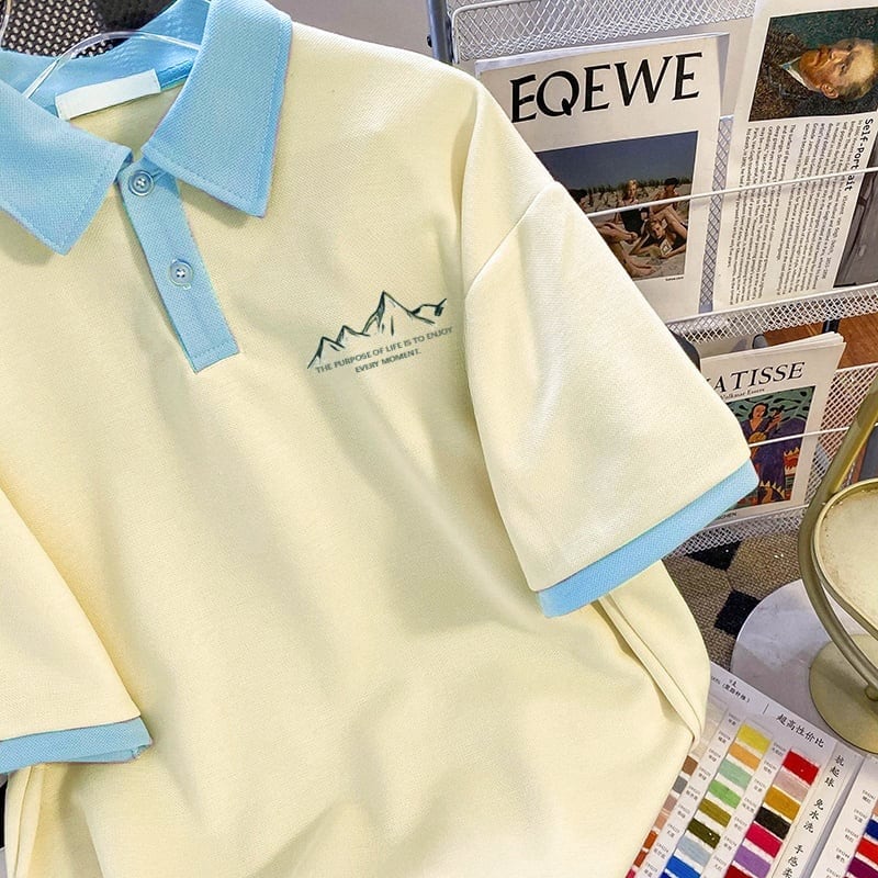 【YPXZシリーズ】★POLOシャツ★ 2color 半袖 トップス レディース 配色 夏服 ブルー グリーン 青 緑
