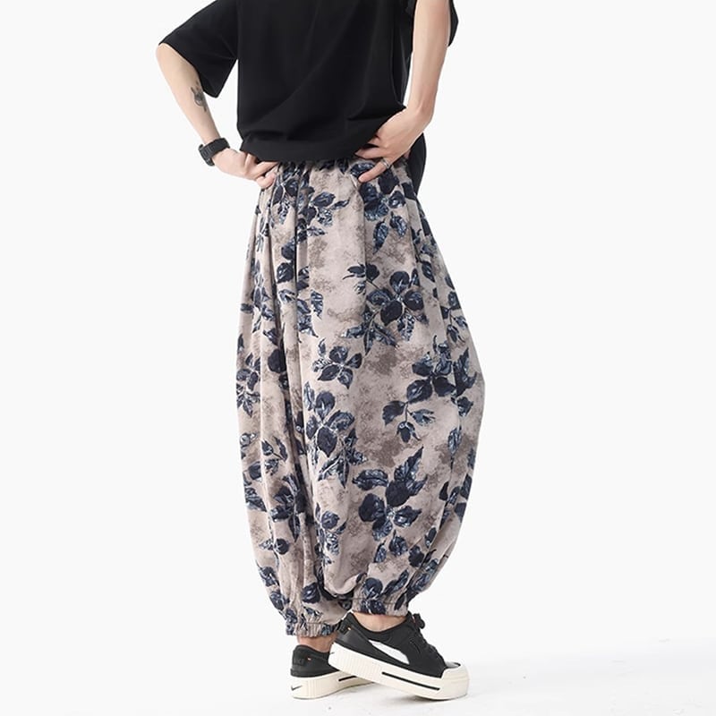 【BFシリーズ】★チャイナ風ズボン★ ボトムス ズボン 男女兼用 メンズ 大きいサイズ 花柄 絞り染め