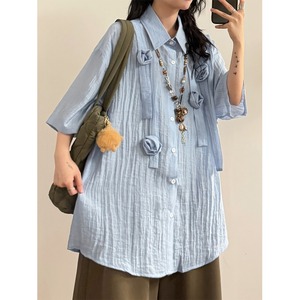 【UATONLINEシリーズ】★チャイナ風トップス★ 4color シャツ トップス 半袖シャツ 男女兼用 メンズ 立体的な花柄 緑 青 紫