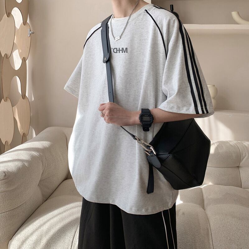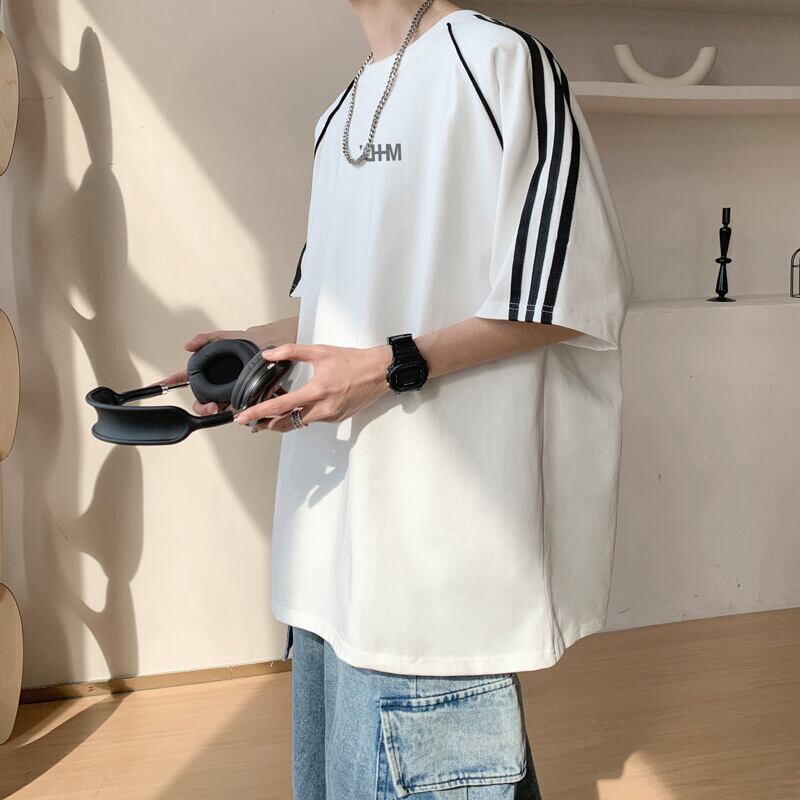 【LPZシリーズ】★Tシャツ★ 3color トップス 男女兼用 メンズ 大きいサイズ 縦縞 カジュアル 黒 白 灰