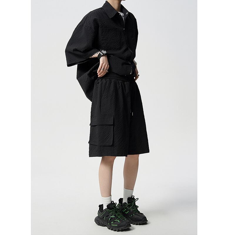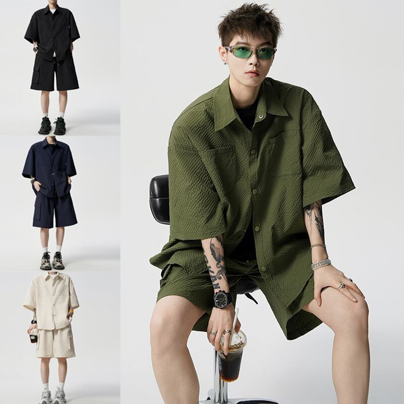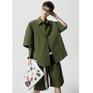【CEXUシリーズ】★セットアップ ★ 4color シャツ+短パン 男女兼用 メンズ 大きいサイズ 黒 緑 青