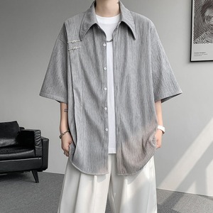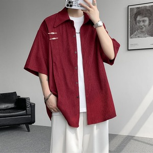 【CEXUシリーズ】★チャイナ風トップス★ 4color シャツ 半袖シャツ 男女兼用 メンズ 大きいサイズ 金属ボタン 黒 赤 白 灰