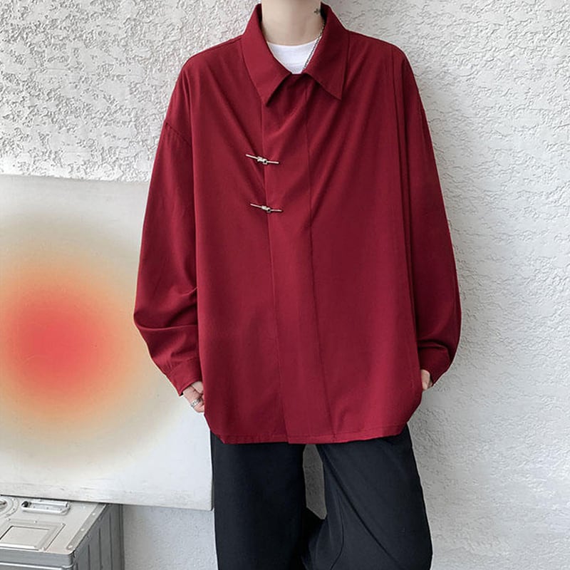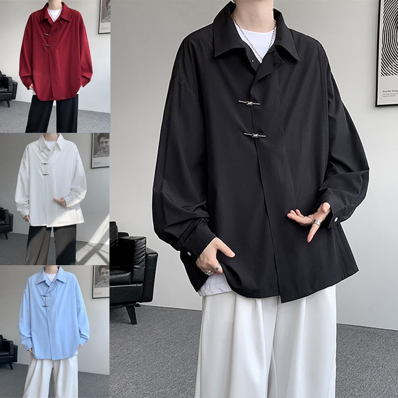 【CEXUシリーズ】★チャイナ風トップス★ 4color シャツ 男女兼用 メンズ 大きいサイズ 黒 白 赤 青 金属ボタン