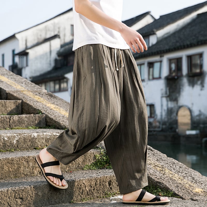 【JIARONGシリーズ】★チャイナ風ズボン★ 3color ボトムス ランタンパンツ ハーレムパンツ カジュアルパンツ 大きいサイズ 男女兼用 メンズ