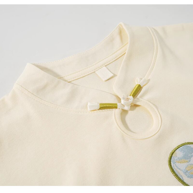 【LHSENシリーズ】★チャイナ風トップス★Tシャツ 花柄 刺繍 ショート丈 S M L 夏 デート 個性的 可愛い