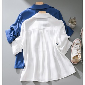 【BFYXシリーズ】★シャツ★ 2color トップス レディース 夏服 Vネック ブルー 青い ホワイト 白い