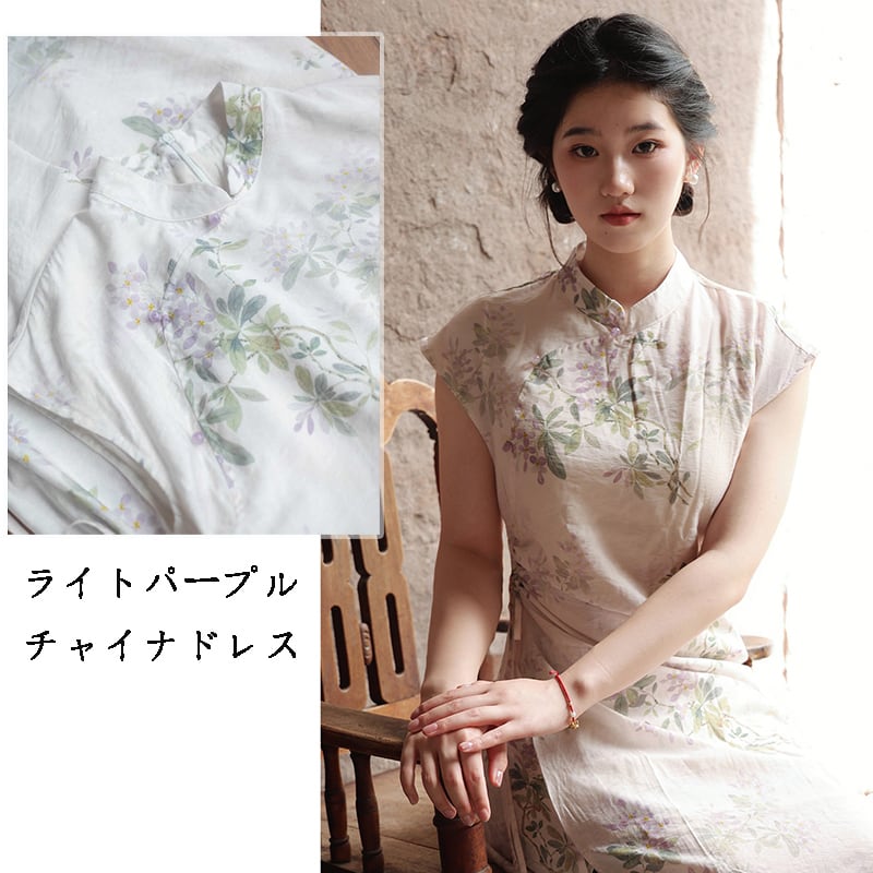 【GZAGシリーズ】★チャイナ風ワンピース★ チャイナドレス レトロ 大きいサイズ ライトパープル