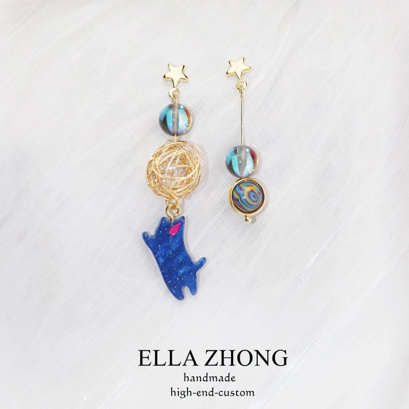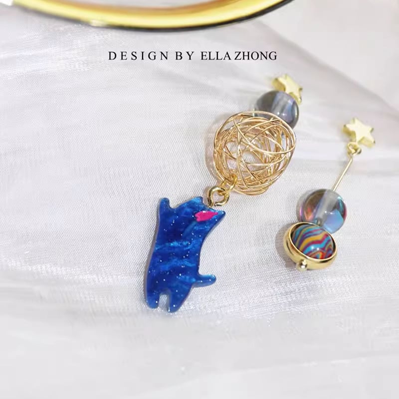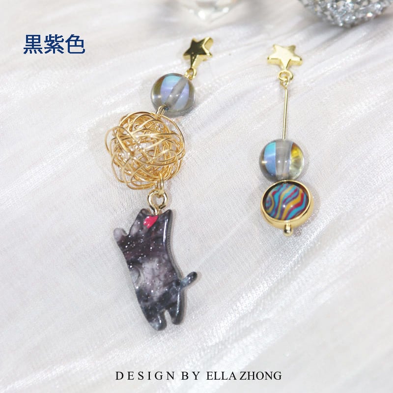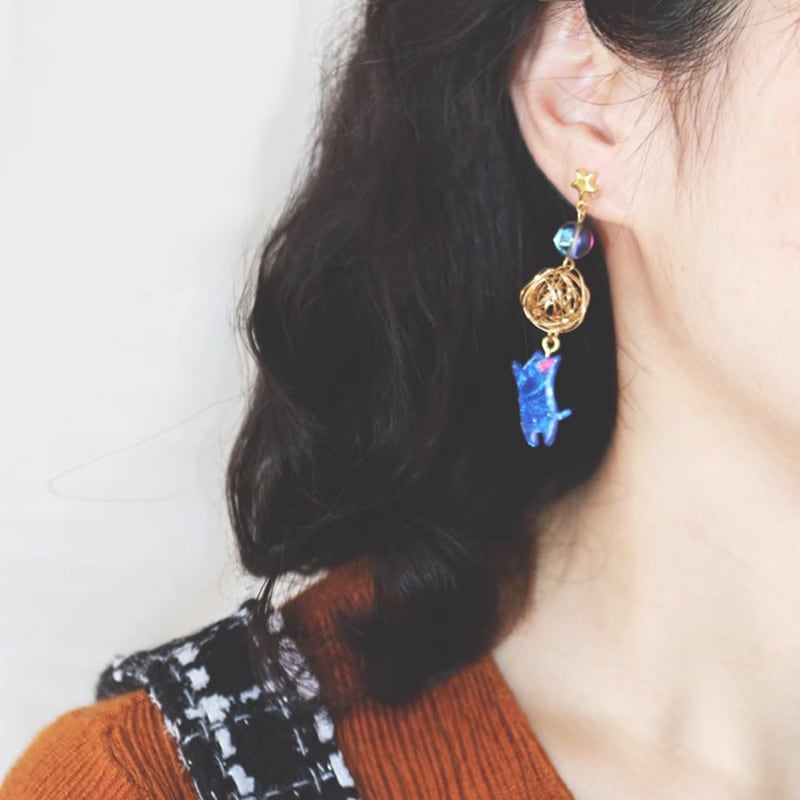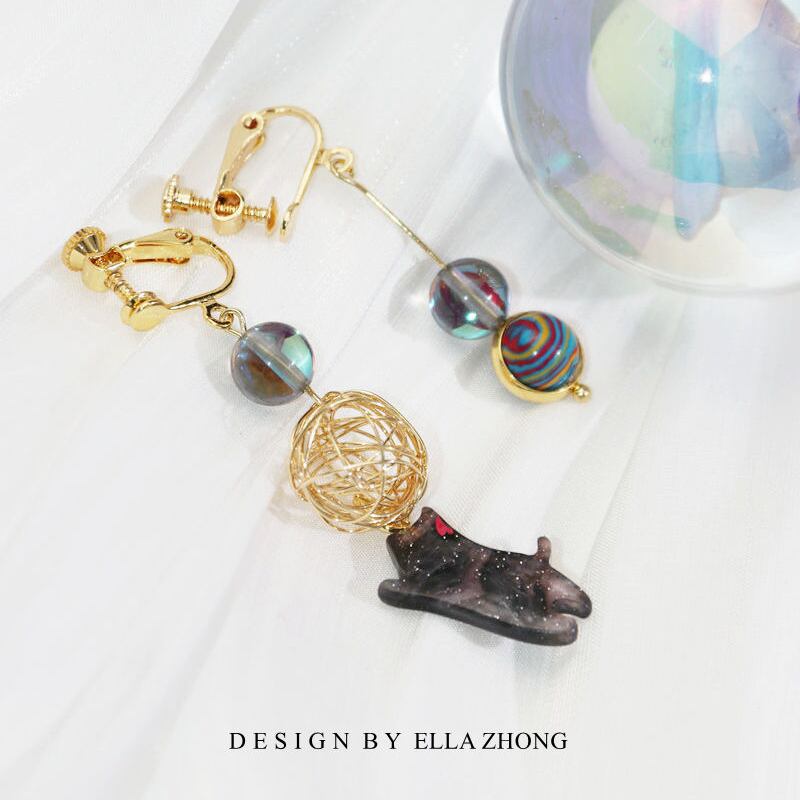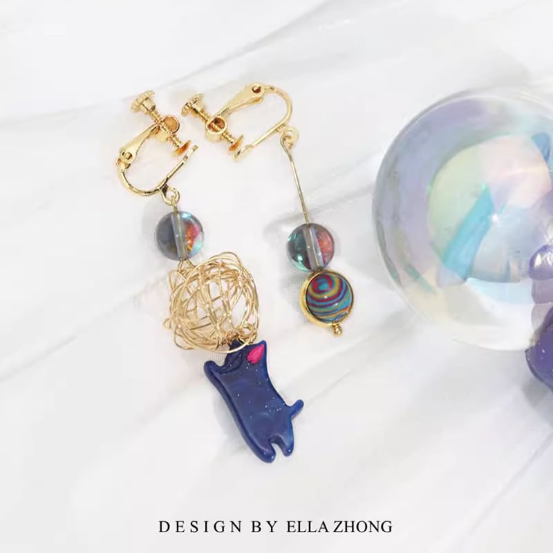 【ELLAZHONGシリーズ】★耳飾り★ 3color ピアスorイヤリング 猫 ねこ ネコ ペア 小物 アクセサリー 可愛い