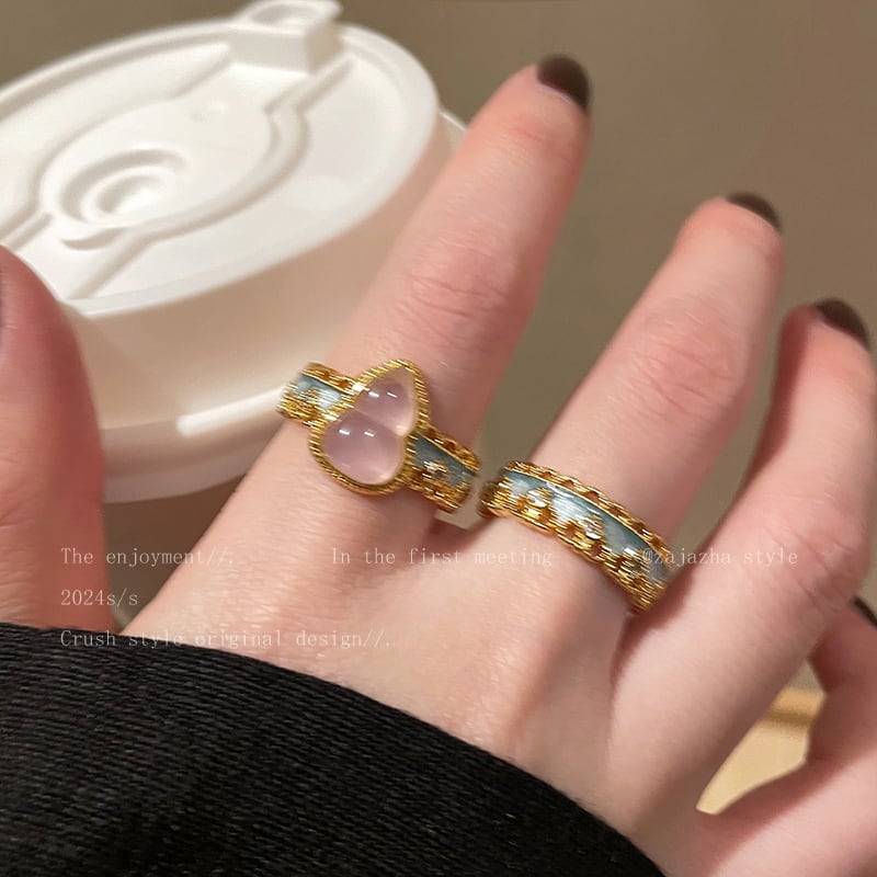 【乍見之歡シリーズ】★チャイナ風指輪★ ゆびわ 2color アクセサリー 小物 ヒョウタン 開け口調整可 デザイン性有り