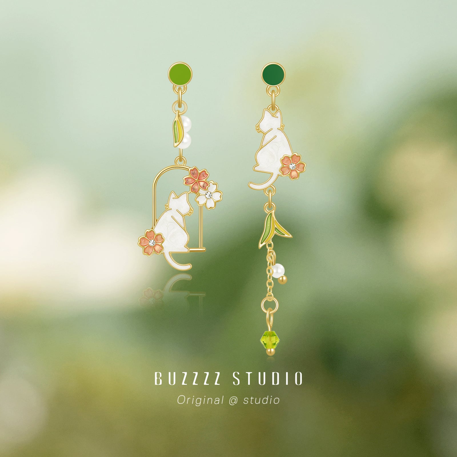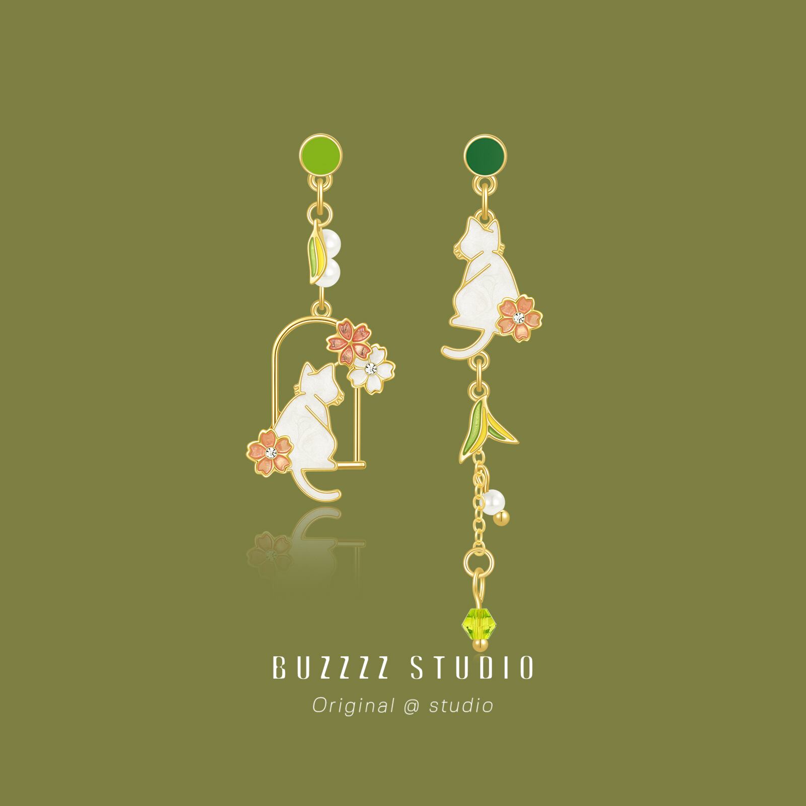 【BUZZZZシリーズ】★耳飾り★ 猫 ねこ ネコ 非対称 ピアスorイヤリング ペア アクセサリー レディース