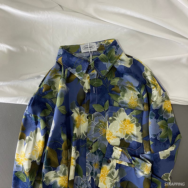 【STRAPPINGシリーズ】★シャツ★ 油絵風 トップス 長袖シャツ 男女兼用 メンズ 花柄 可愛い 秋服
